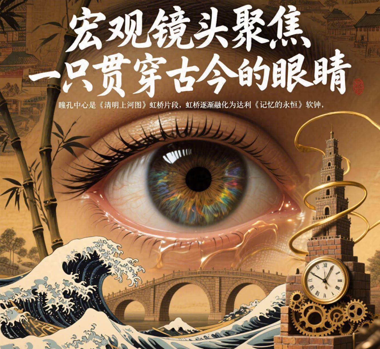 这只眼,看得见汴京虹桥上车马的尘烟,也容得下西班牙荒原熔化的时钟;既盛得住江户时代的惊涛,又垒得起通向云端的巴别塔。